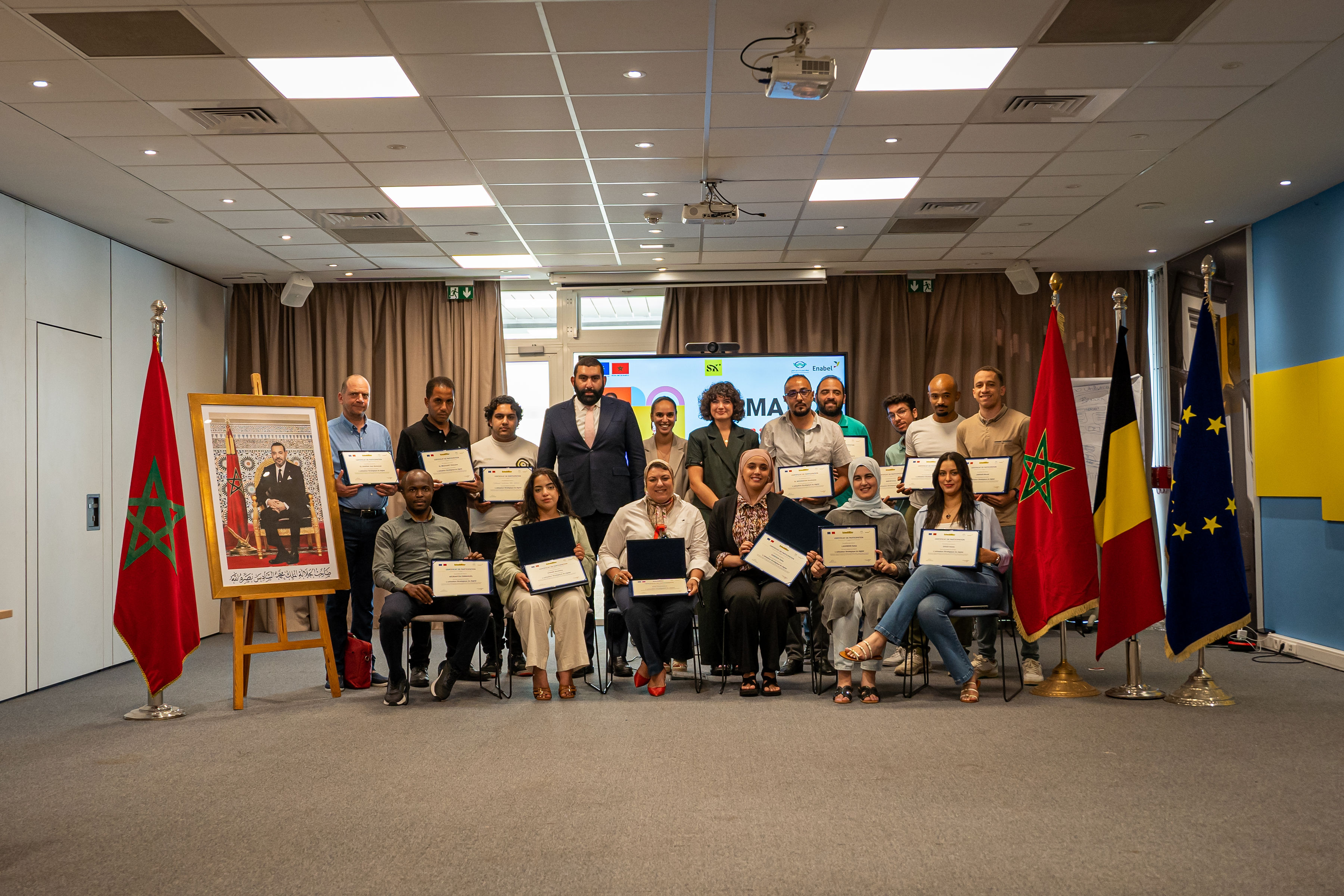 Leïla designed and delivered two purpose-built programs for Enabel's Link Up Africa project: a capacity-building cycle for professionals across five student support organizations, and a one-month intensive incubation program for ten Sub-Saharan student entrepreneurs — from pre-validated idea to MVP, landing page, and investor-ready pitch. One participant went on to win an award in China following the program, a direct validation of the incubation's real-world impact.